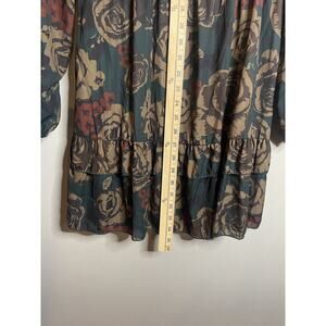 Floral Dress Mock Neck Lantern Sleeve Ruffle Hem Floral Dress Size Large