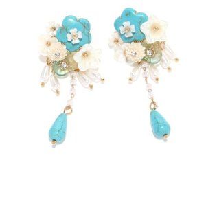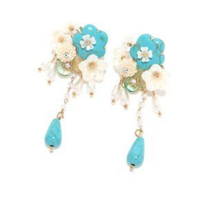 Elegant floral drop earrings featuring vibrant turquoise and gold accents. Perfect for adding a touch of sophistication to any outfit.