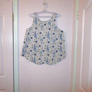 White and blue striped scoop-neck, sleeveless tank