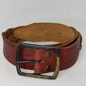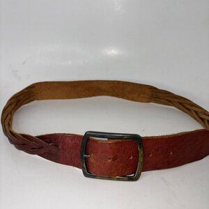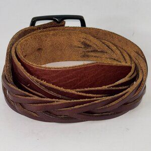 Floral Embossed Braided Brown Genuine Leather Belt Women's L Boho Western