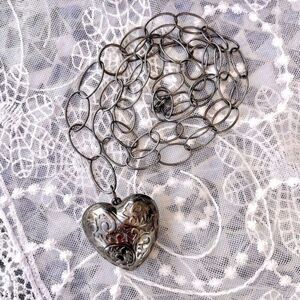 Floral Embossed Puffy Heart Long Lagenlook Y Necklace
