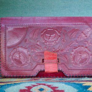 Beautiful vintage red leather clutch purse. Made in Mexico.