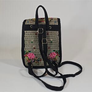 Floral Embroidered Backpack Purse Bag Mexican Artisan Lightweight Colorful Pink details: