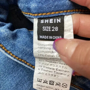 Elevate your denim game with these stunning floral embroidered bell bottom jeans from SheIn. The intricate floral pattern and Aztec accents make them a true statement piece. The jeans feature a zip closure and back pocket for added convenience. The slim fit and flared style provide both comfort and style.