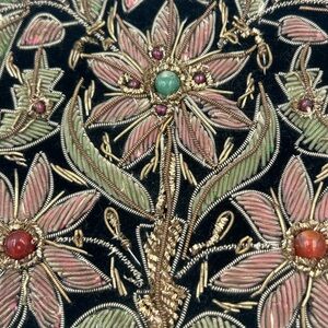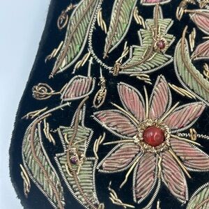 Chic black clutch with exquisite floral embroidery, ideal for elevating your style.