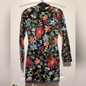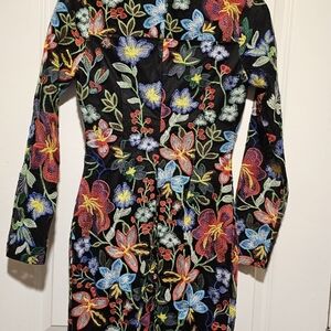Elegant black dress featuring vibrant floral embroidery. Perfect for any occasion.