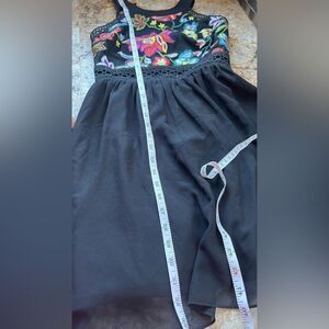 Elegant black dress with vibrant floral embroidery. Perfect for any occasion.