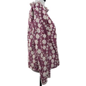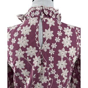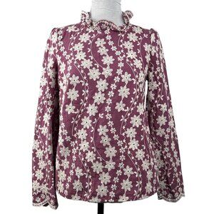 Elegant floral embroidered blouse in a rich purple hue. Perfect for adding a touch of sophistication to any outfit.