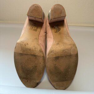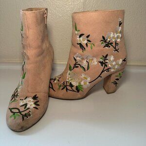 Forever 21 pink nude faux suede high-heeled boots with floral embroidery
