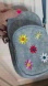 Stylish denim crossbody bag with colorful floral embroidery. Perfect for adding a playful touch to any outfit.