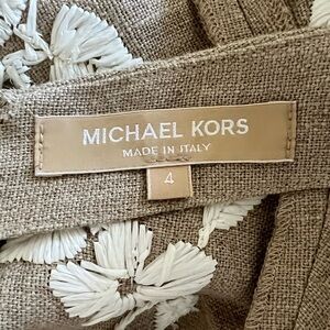 Elegant tan dress with white floral embroidery. Perfect for special occasions.