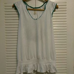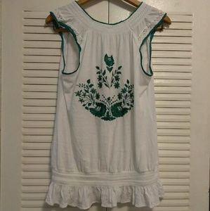 Very pretty FP tank with flutter shoulders, floral embroidery and stretch waist band. Great used condition. Perfect! Would fit M and L, IMO.