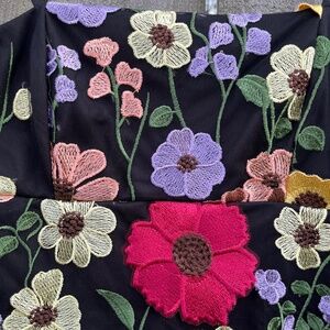 Floral Embroidered Mesh Mini Dress – Black w/ Colorful Flowers, Size L