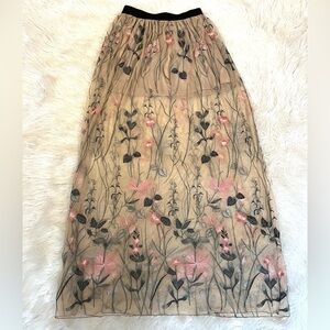 Floral Embroidered Mesh Overlay Maxi Skirt w/ Short Mini Liner