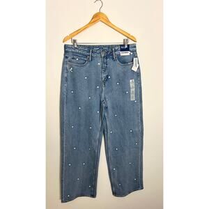 Floral Embroidered Sky-Hi Wide-Leg Jeans Old Navy Size 12