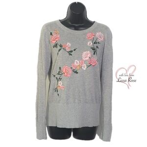 Floral Embroidered Slit Cuff Sweater (LOFT)