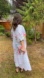 Step into a garden of color with this charming white dress, blooming with vibrant hand appliqué florals in pink, blue, and yellow. The deep V-neckline and puffed elbow-length sleeves bring a playful touch, while the tiered skirt and scalloped hem add flowy, feminine movement that’s perfect for twirling in the garden or at brunch. Made from an upcycled vintage tablecloth.