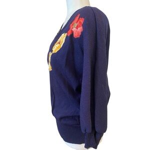 Anthony Sicari Womens Vintage 1980s Floral Sweater Size 6 Made In USA Purple