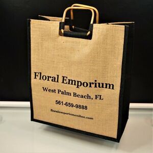Floral Emporium Natural Burlap Jute Tote Bag Reusable Full Gusset Bamboo Handles