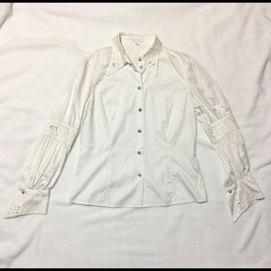 Vintage women's Escada button-down shirt with floral embroidery, beading and sequins. Beautiful, sexy, classy! 100% cotton. No stains or damage, new condition.