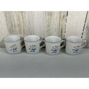 Item: Floral Expressions Stoneware Set of 4 Coffee Tea Cups Mugs