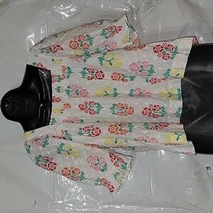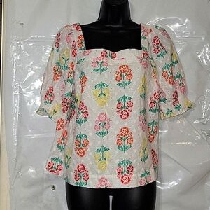 Keywords: floral top, eyelet blouse, puff sleeve top, square neck blouse, summer top, cottagecore, blouse, womens top, floral print, short sleeve top, white blouse, casual top, feminine top