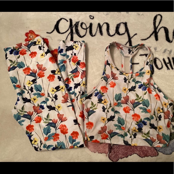 Super cute matching floral set from Fabletics. The sports bra is a long line bra, so it’s more like a crop top. The leggings are cropped just above the ankle and are high waisted. Super cute set, the pattern is just too bold for me. Only work maybe 4 times.