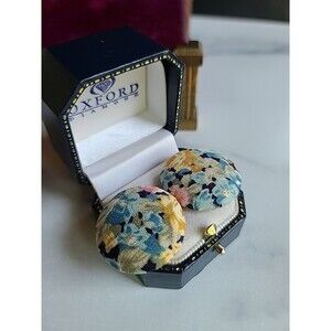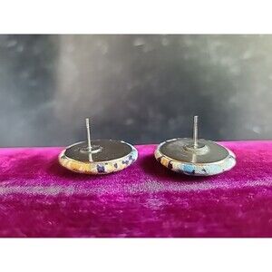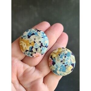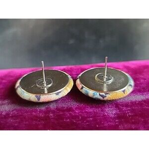These are a vintage pair of floral fabric covered circular stud earrings.