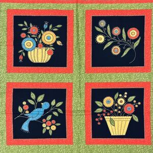 Floral Fancies Quilt Panel Bird Garden Flower Pot Quilt Blocks Benartex 2415