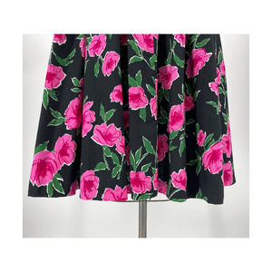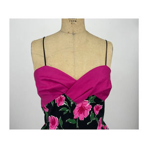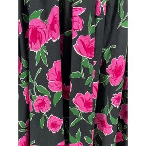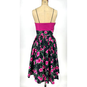Floral Fit and Flare Sleeveless Pink Black Midi Rockabilly Dress Medium