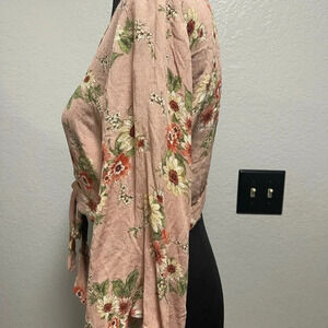 Floral Flare Sleeve Crop Top with button up and tie front Size Medium
