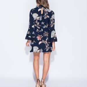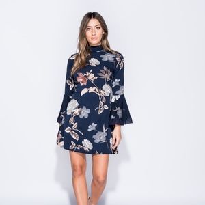 Floral dress with bell sleeves and high neck. There are ruffles at the end of the sleeves. Really adorable dress that can be dressed up or down. This dress is sold out in most sizes at ASOS.