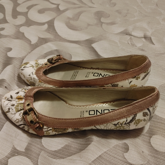 Floral flats; they are white with rose gold accents. Gently used .