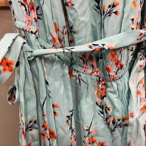 Floral Floor Length Blue High Low Dress with Ruffle Cap Sleeves Xhilaration Smal