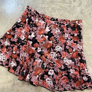 Chic floral flouncy skater skirt with a rose pattern.