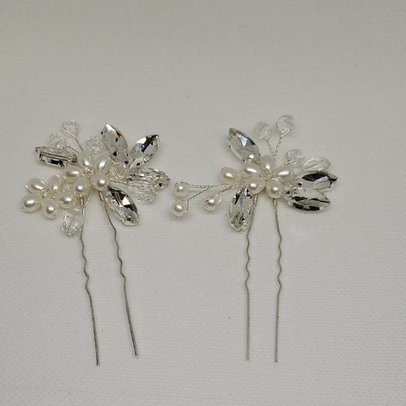 Add a touch of elegance to your look with these stunning silver and white hair pins. Perfect for any occasion.