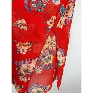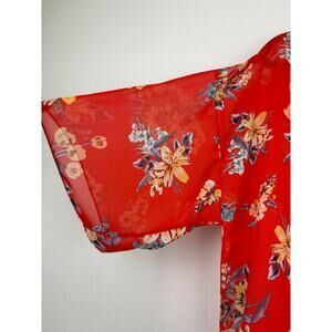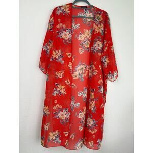 Floral Flowy Beach Coverup Red Sz Small Sheer Boho Floral Kimono Duster Summer