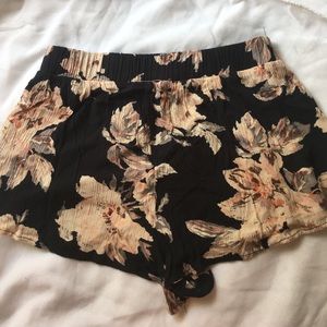 Flowy black shorts with pink floral print , worn twice, fit true to XS with elastic waistband