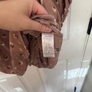 cozy and soft slowly floral top in a mauve color. a bit of a cropped style with the sides coming up a bit more than the front and back