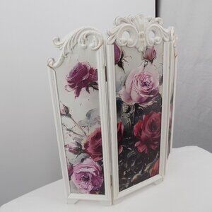 Floral Folding Screen Roses Ashland Fall Blush Romance Hinged 18.75" Tall New
