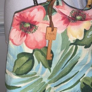 Floral Fossil Handbag with Bamboo Handle & Leather Crossbody Strap