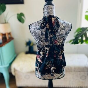 Floral Fringe Tassel Hem T-Strap Halter Top