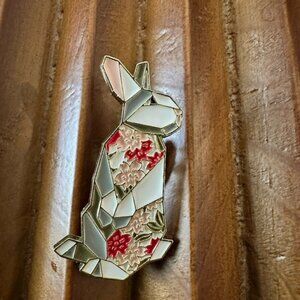 Charming brooch featuring a geometric bunny design with floral accents. Perfect for adding a playful touch to any outfit.