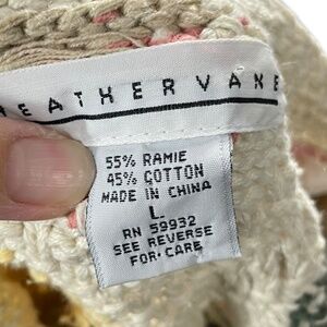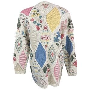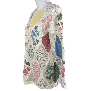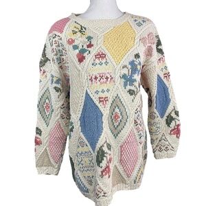 Floral Geometric Knit Sweater L cotton ramie vintage honeycomb chunky knit