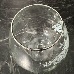 Floral Glass Goblet with Silver Rim