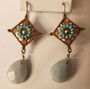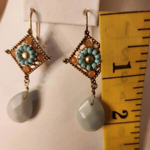 Floral Gold and Turquoise Blue Beaded Earring. 2 inch drop length.