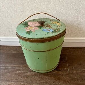 Add a touch of nature to your home with this charming floral green decorative bucket. Perfect for enhancing any room with its vibrant colors and artistic design.