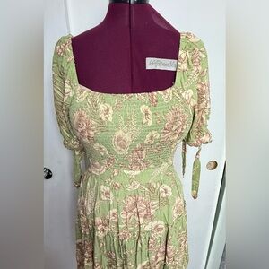 Embrace elegance with this charming floral green dress. Perfect for any occasion, it features a delicate pattern that adds a touch of sophistication to your wardrobe.