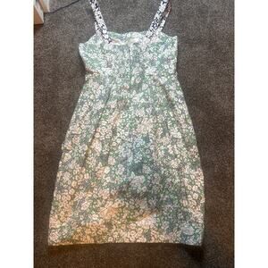 Chic and stylish mini dress featuring a beautiful floral pattern. Perfect for any occasion, this dress combines elegance with comfort. The green and white colors add a fresh and vibrant touch to your wardrobe.