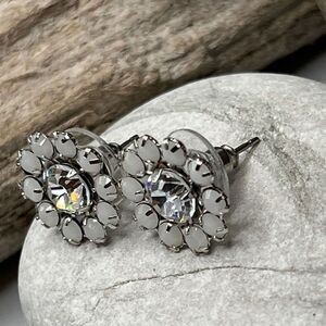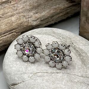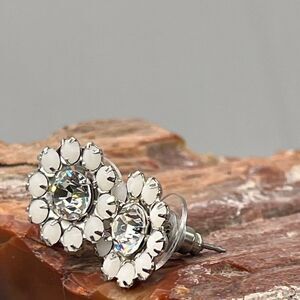 Floral Halo Post White Silver Swarovski Crystals Statement Earrings